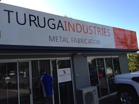 The good blokes down at Turuga Industries of Capalaba in Brisbane are fitting my second hand Bullbar to my Coaster for me after repainting it.