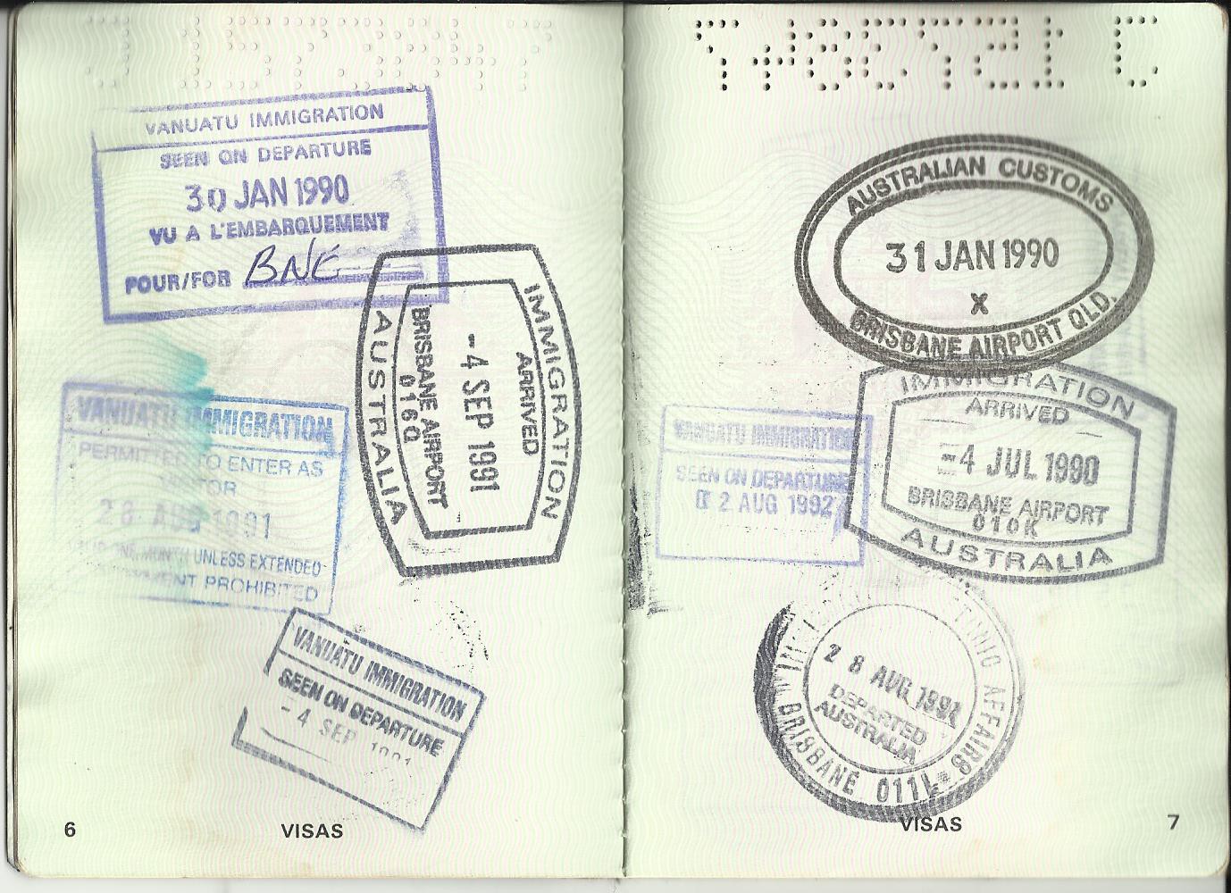 My passport was current from Janurary 1990 till janurary 2000 looking in it is like a maze to find the departer stanp from Brisbane inter airport to Port Vila for each trip I did