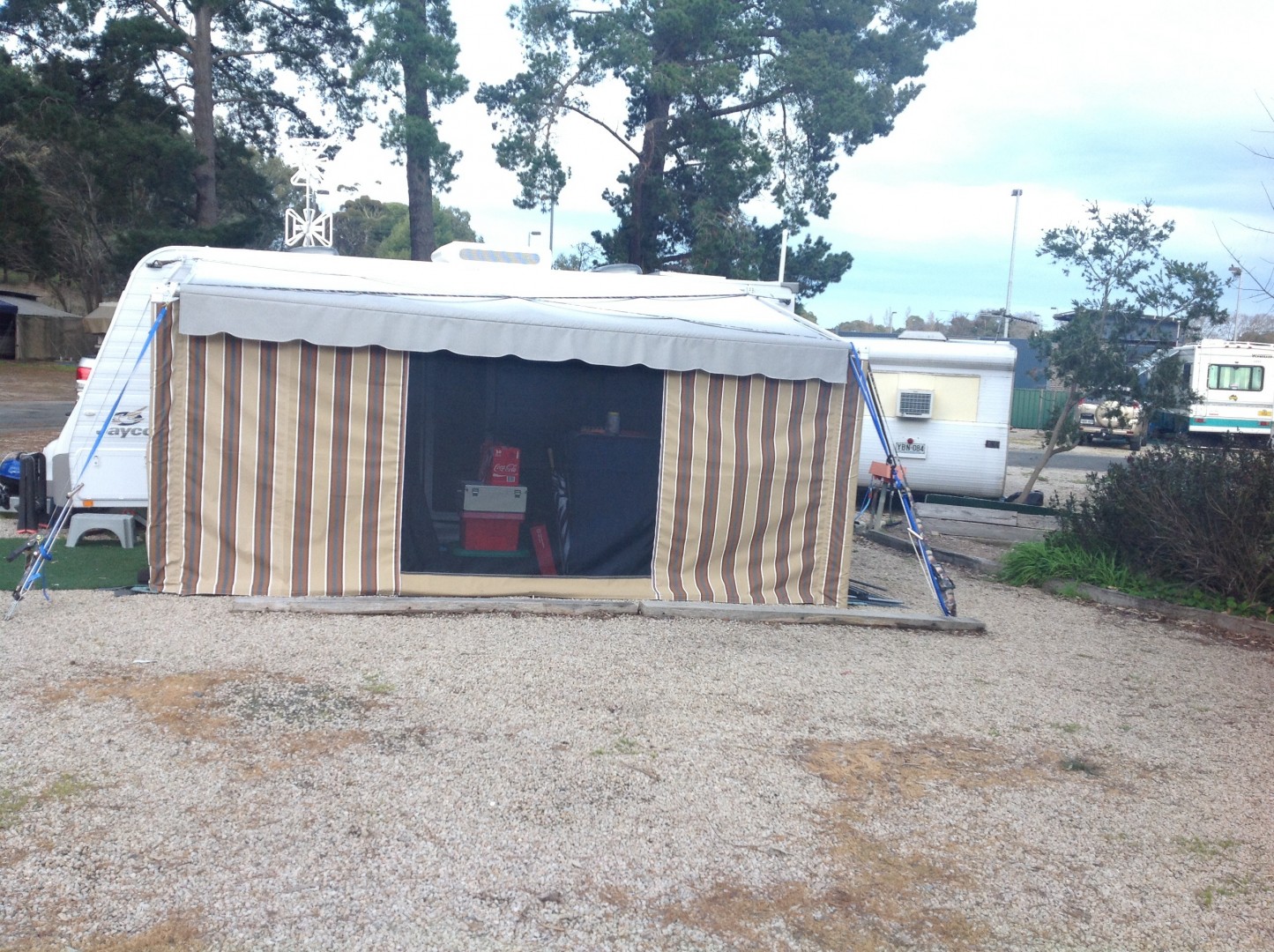 We found ourselves in a terrible situation last winter. We were at Mt Barker in the Adelaide hills. It rained all night, came out to the annex in the morning to discover a swimming pool had taken up residence on our awning, a huge bulge of water over 16 feet of awning, probably 300 litres of water... YIPES!!!