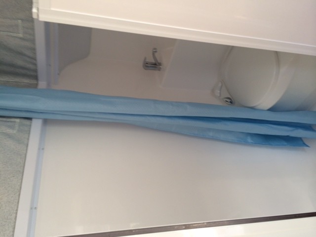 A pity the bed had to go across the back to get the shower in. We changed our van when we got too old to be climbing over each other in a bed like that. Hope you don't have the same trouble..