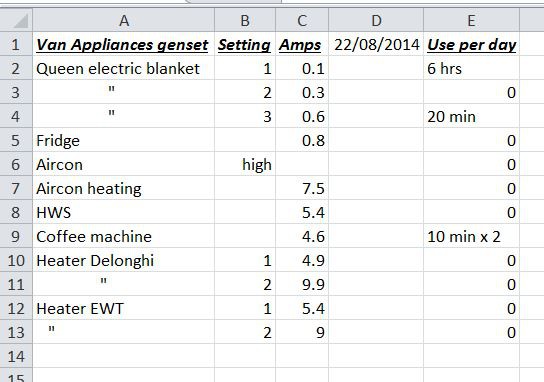 I guess there could be 1 hour of the Delonghi 4.9 amp heater in the morning and evening if we don't have either gas or diesel heating installed yet.