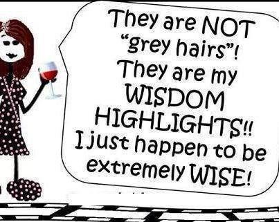 Nelly I love the pic. I had never thought of my grey hairs as being little strands of wisdom. What a wise old woman I was becoming. All gone now though and back to being a blonde.