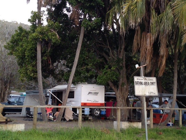 After a quck check out of Bundaberg we finally arrived at 1770. It was absolutely packed and I didn't enjoy the maneuvering to get into our site. However, we did make it, tightly fitting near some coconut palms and once we were set up we could appreciate the beauty of the spot. Absolute paradise. Just a few too many noisy people for my liking. We have put up our end screen so just look at the view.