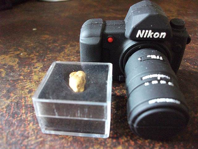 He also wanted to give me an idea of just how difficult prospecting for gold is so he wrapped this one in enough bubblewrap and sticky tape to cover the Queen Mary. Took me all bloody day to unravel the damn thing. Anyway, thanks a million, Goldie. Much appreciated, and I hope the luck continues through the surgery on my gob and well beyond. I took a pic of the nugget to show folks its size.