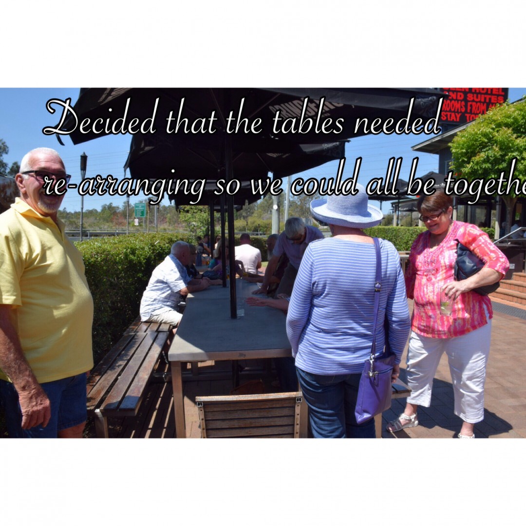 As people arrived it was all very natural to greet each other as long lost friends that we have known for years instead of just meeting. This seems to be the way with GN's. Every body fitted in well and soon the laughter and conversation was flowing. A change in seating arrangements that the hotel had, was done so we could all join in together and we were away.