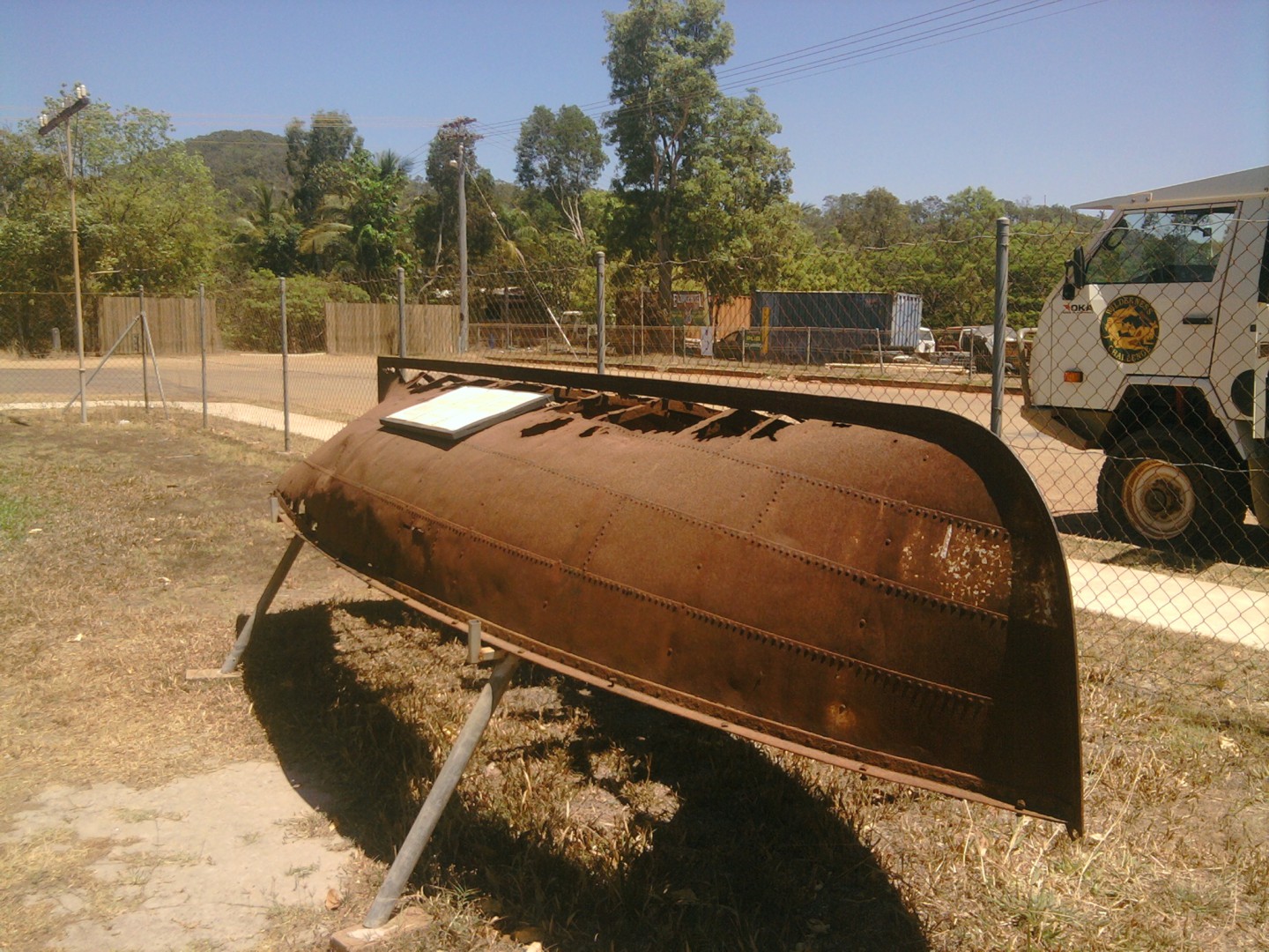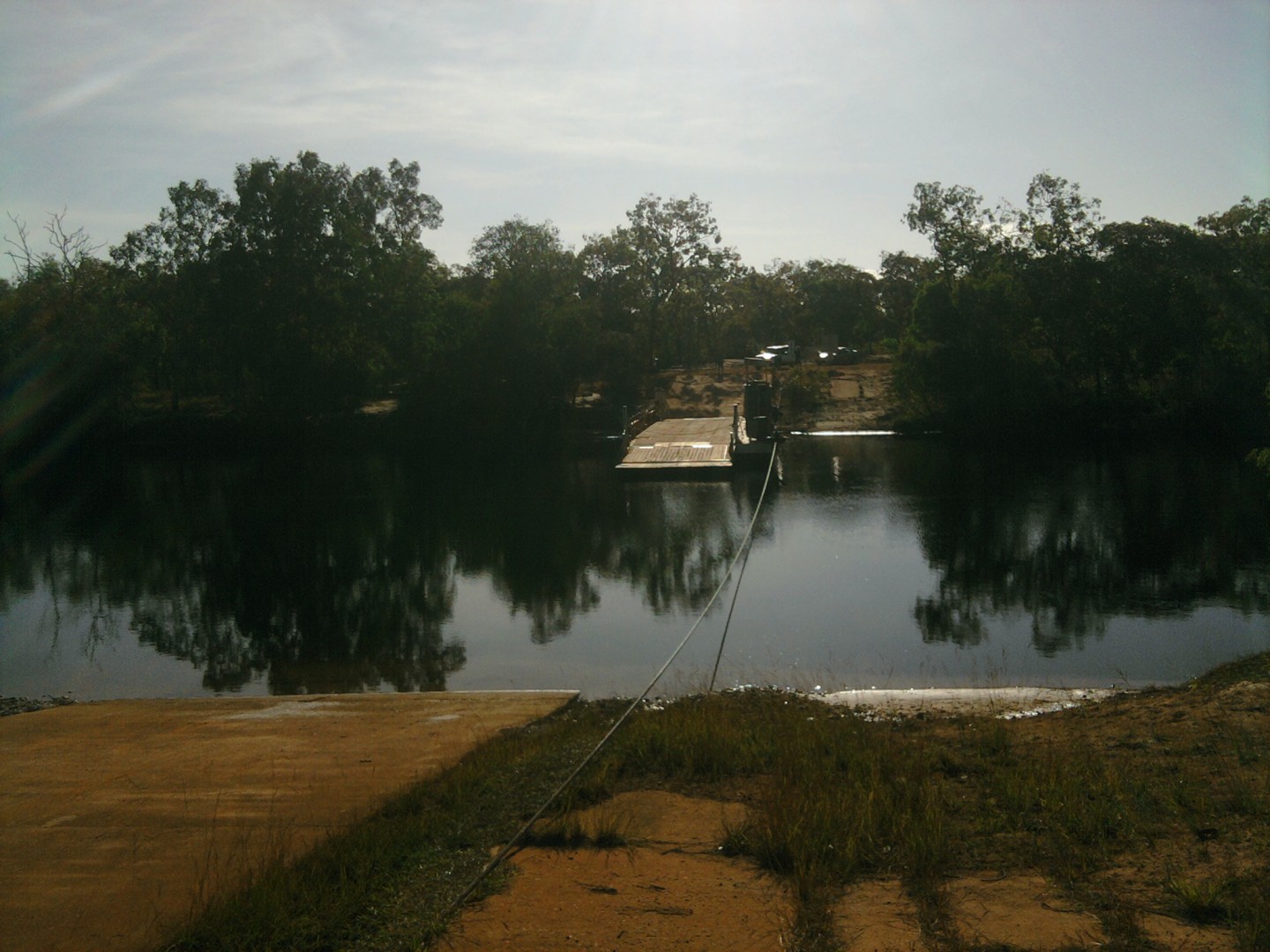 Am having lunch at Coen. The road wasn,t too bad so far, with good and bad patches.Dust is everywhere.As I can,t get to the ferry across the Jardine before 4.30pm, I wll probably camp at Flying fox falls.No real problems so far.The boat is a riveted steel rowboat used as a flood ferry at Coen. Will try to post tonight. Bill