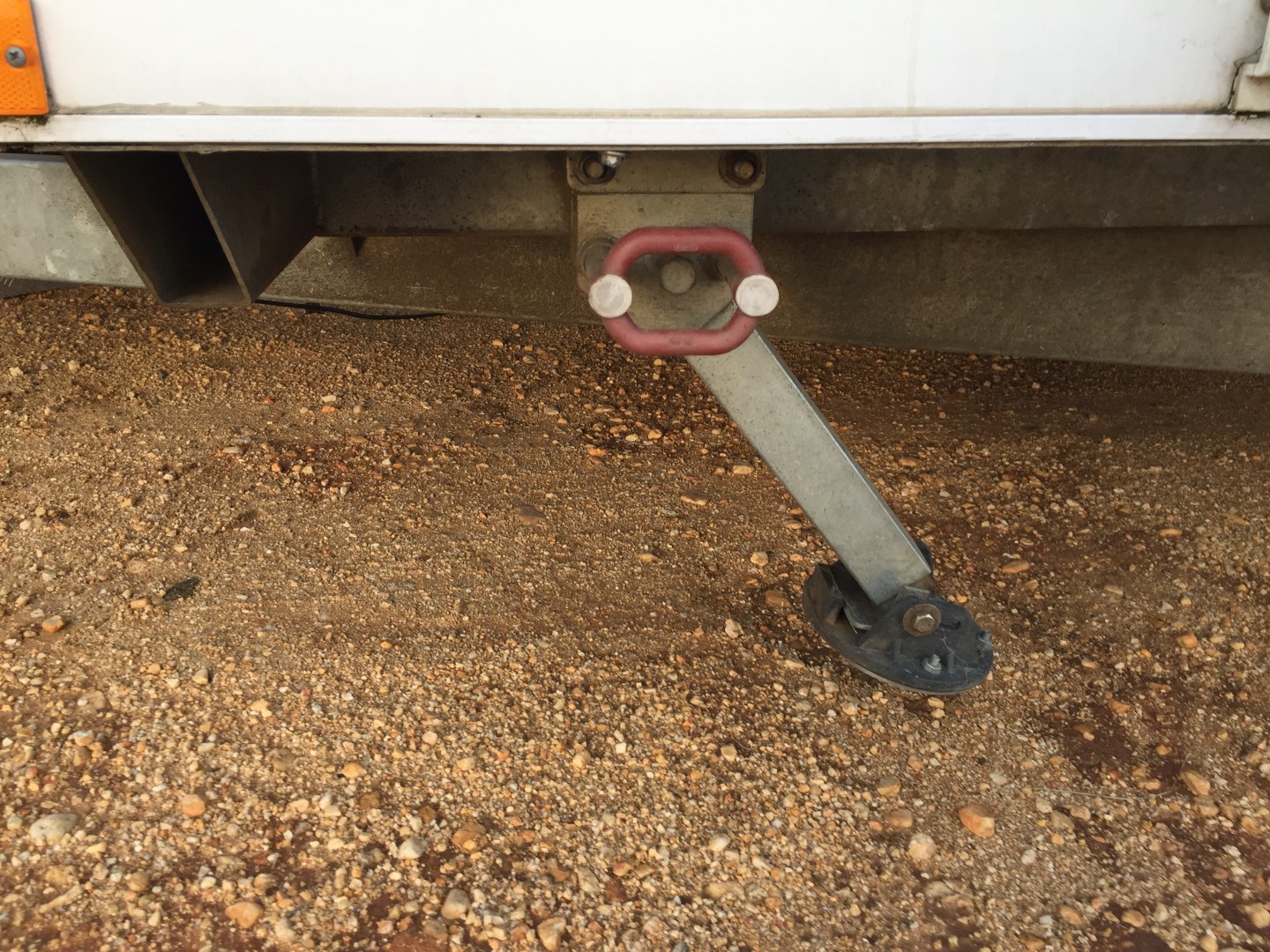 You just forced me to look at a pic of my new Den being built as we speak and looks like the legs on mine drop down vertically. I would speak to the dealer about it before you do anything else. They might be able to change them over for you for something more suitable. My understanding is they are only stabilisers and not weight bearing legs as such.
