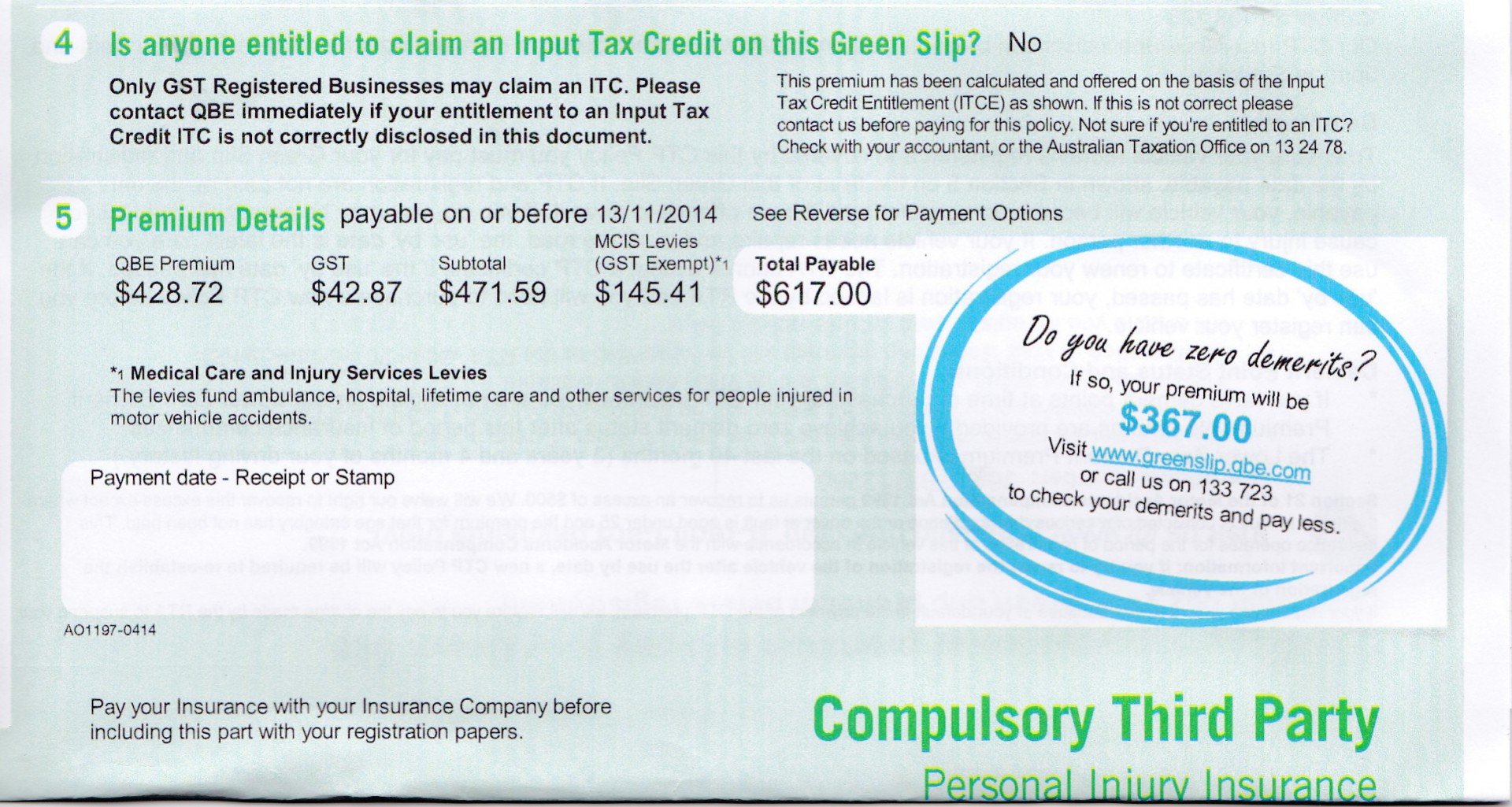 It works for me - but then I have no demerit points, and haven't had any since I was considerably younger than now.