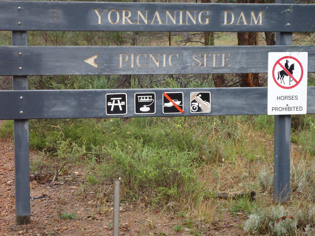 Now I won't name the camp, lets just say that it has a sign on the main road saying it is a dam and when you turn down this road you come to an entrance road to the dam which has a brown sign which does not have a no camping sign symbol on it, no boats, not trail bikes etc, but not no camping. So turn down this road and you come to a rather small sign which tells you it is not an "authorised" camping ground and tells you to go to a caravan park which is about 10 kms down the road further away from the town which controls this picnic site.