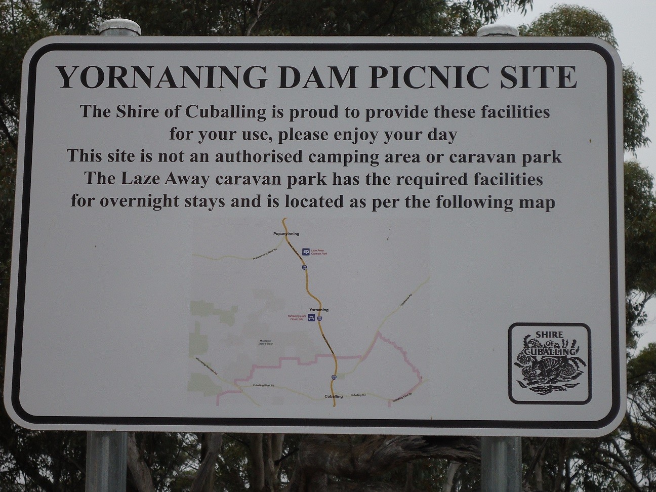 I phoned the Shire of Cuballing myself yesterday because I was told it was a great place to stay by a couple travelling from the east, the shire told me it was definately a "Day Use" area only, I said that we were travelling and looking to stop overnight and was told that we couldn't stay overnight, so we had to rearrange our criteria.