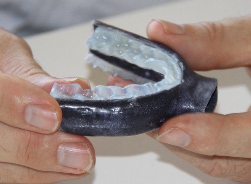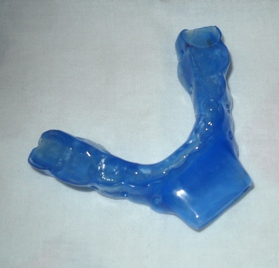 I started doing some research and found that CSIRO were developing a mouth piece and trials were underway in Brisbane. Unfortunately these appliances will cost between $1,500.00 and $3,000.00 with no Medicare assistance, although you can get a CPAP machine free !! This is the Appliance.