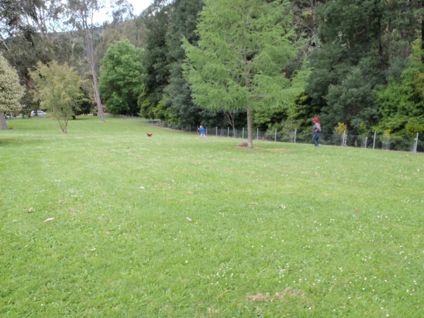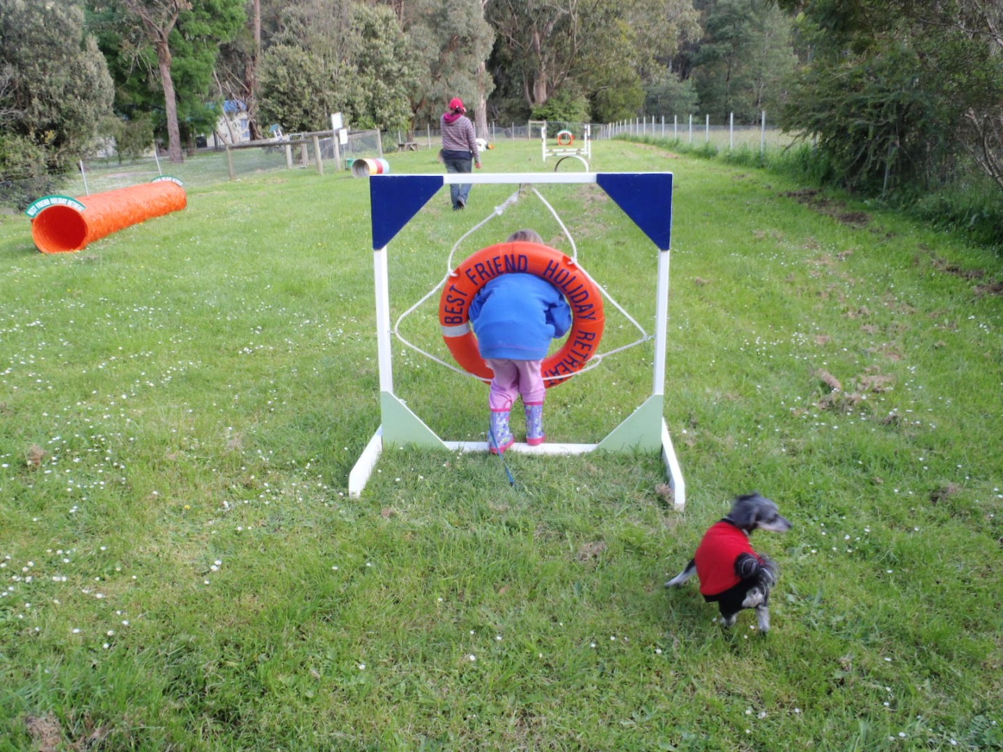 There are at least 5 individual huge fenced play areas for one dog at a time....we saw free wild echidnas etc, beautiful Parrots in open aviaries, running streams all at the park...90 mile beach nearby and Port Albert fishing with the best Fish'N Chip Café in Australia..we went back 3 times in a week.....
