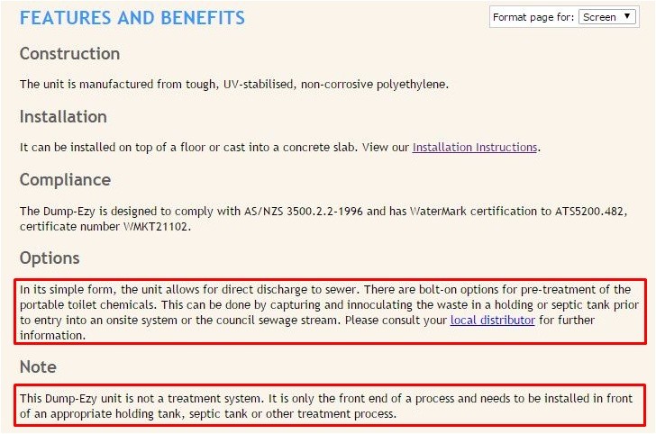 a black water dump point as far as I can find out, using makers web site, doesn't need sewerage. It's a grey water dump point that needs it, that is why you don't see a lot of black and grey water dump points only black water ones.
