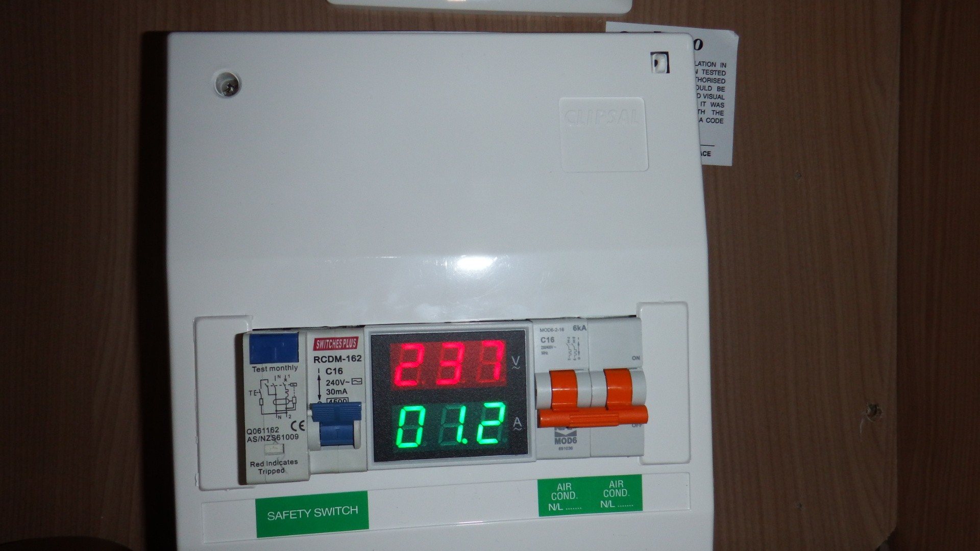 Thanks guys, I needed to isolate the aircon, so a full replacement of the very weak Jayco system was in order. So I thought why not a volt/amp meter as well? Ebay came to the rescue.