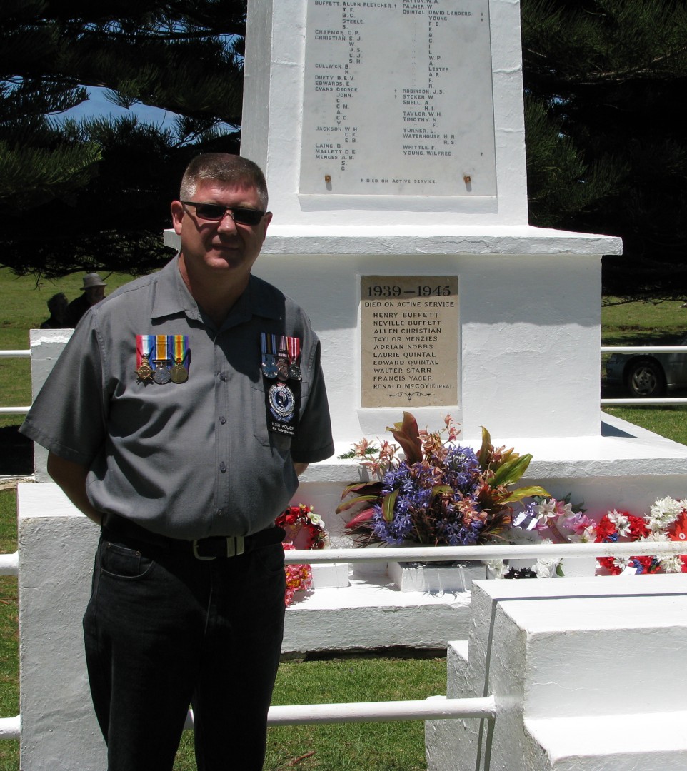I attended the Local RSL club yesterday and introduced myself to the local President and the Vice President who made us feel very welcome and as such, I formed up with there very small contingent of members to remember the day the guns fell silent all those years ago today. The service was very well attended by locals and visitors to the Island like myself. They have a local Cadet unit which is very involved as well. As part of strengthening friendship I donated my blazer patch as the they have a board where such items are displayed. The President was also surprised that the NSW Police actually have a sub Branch so I thought it was good from that point that I made it know that yes we do exist. It was also very interesting to note that the police only work to 5pm and there is no RBT???? This afternoon Roxy and I then embarked on a tour of the Island which was very good with an afternoon tea of tea and scones yum oh. It seems that life is very good here no crime and no tax but they do pay through the nose for most things Fuel for instance is $2.64 p/l a 45KG bottle of gas $180 but they pay no tax buggered if I know I could not afford to live hear on my meagre pension so its only a place to visit ONCE. Anyway enough for today Roxy and I are off to dinner and a bottle of Wine LOL