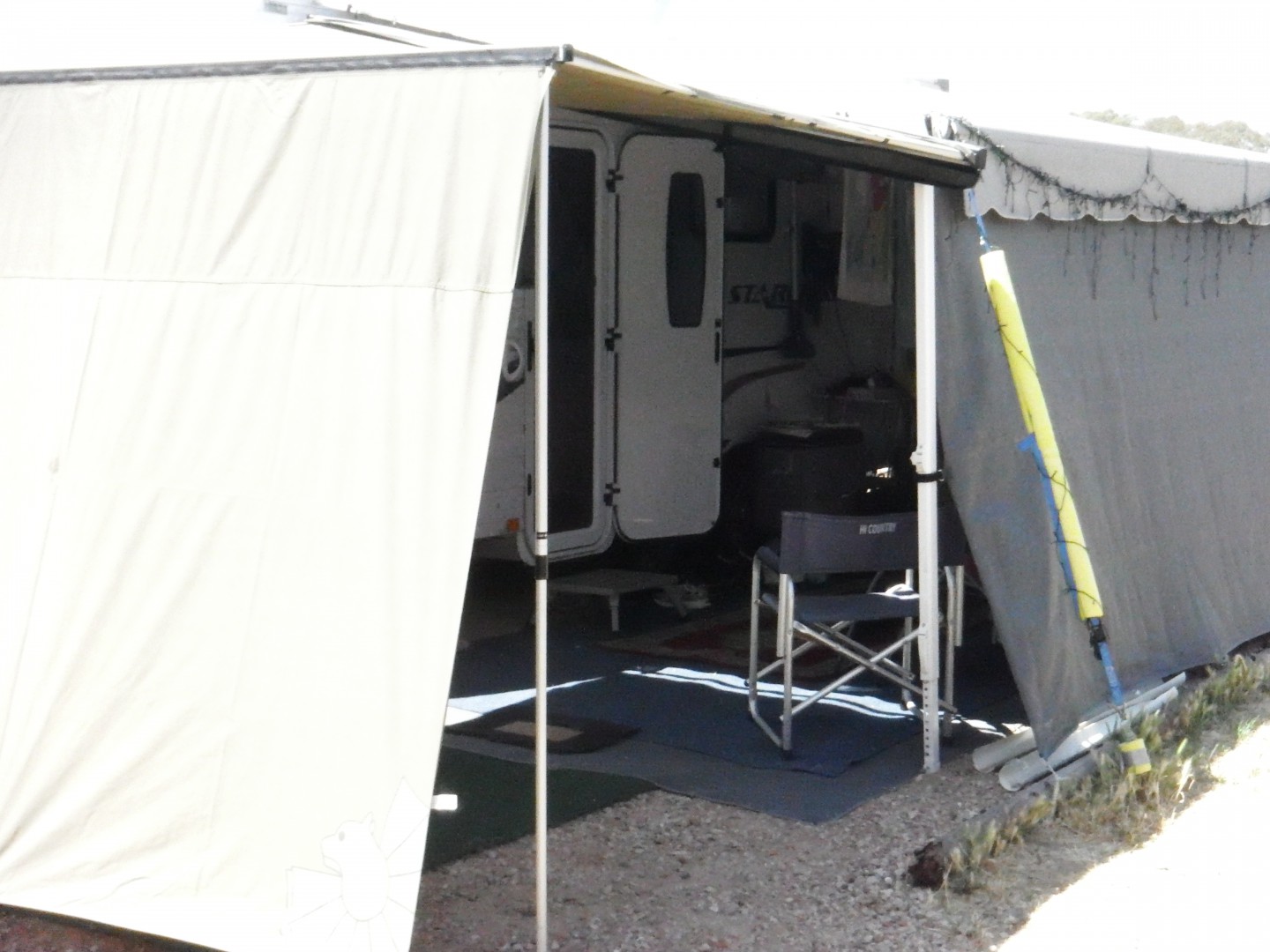 We have this wonderful shade we attach to the roof bars on our ute, stop for a cuppa, roll out the small awning and presto a cool place to sit and enjoy the bush.