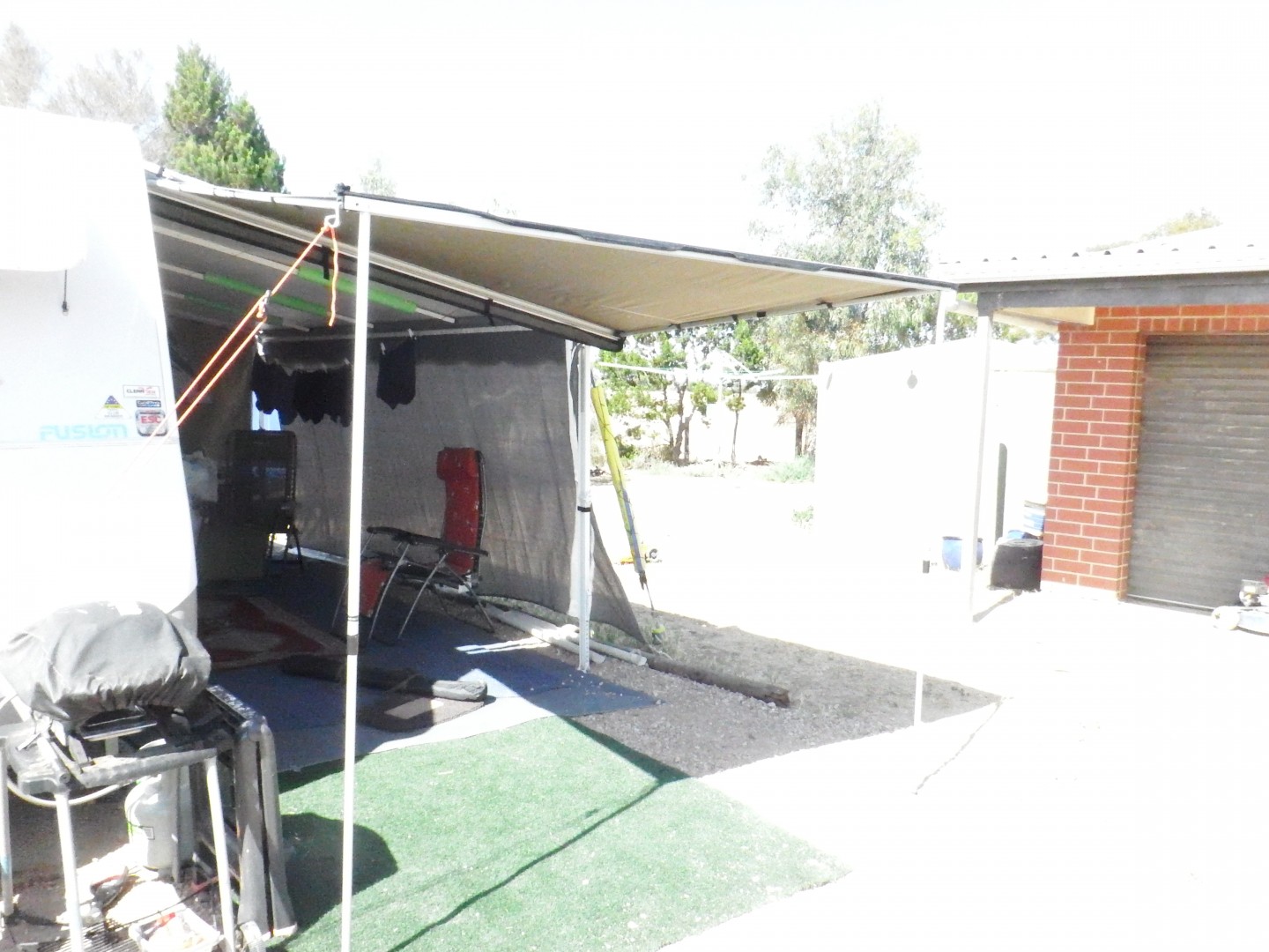 I decided to place a bracket on the side of the van, drill a hole in the caravan awning upright and attach the car awning to it. Yes it is at an angle but check the photos, its a great idea in summer and extends our caravan awning by a meter or two. We got the end piece as well.