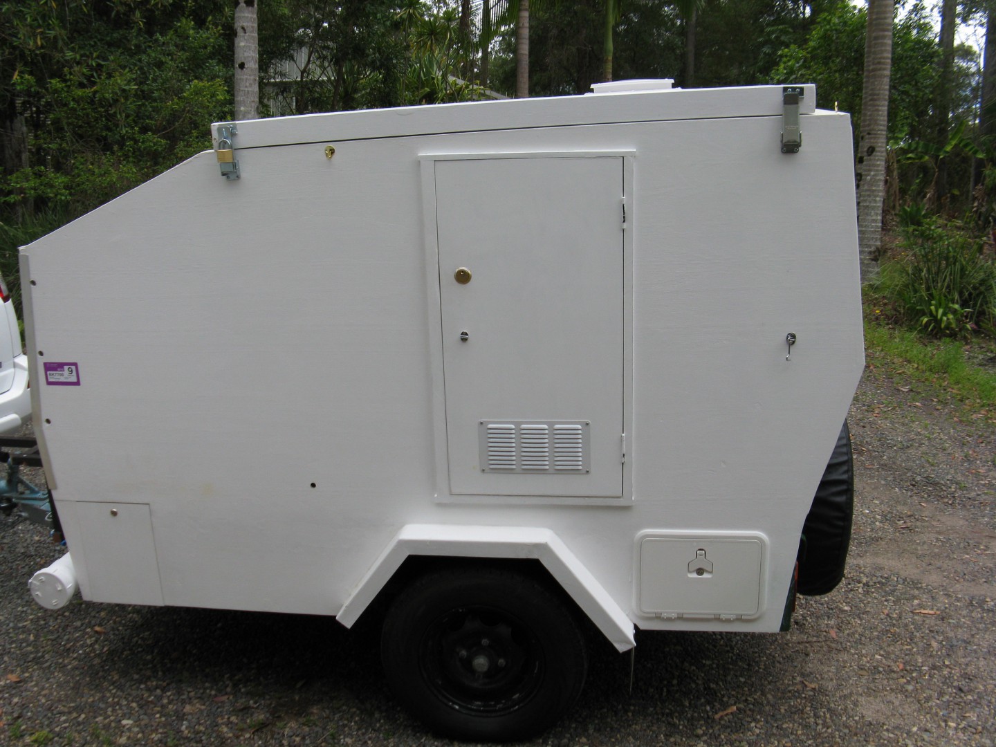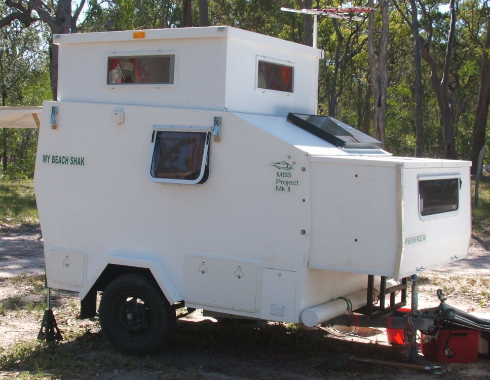 The older you get everything becomes harder to do. Hence I decided to build a more suitable "small" camper easily set up on my own... I have a JAYCO Dove Outback parked at home that has become too hard to use for me.. I decided to build my own Beach Shak and once again travel the East Coast. Construction finished about early October and a test trip to Bribie Island immediately showed up a few problems.. Adjusted those and set of again this time to Baffle Creek and Agnes Water area.. Great trip - tows really well at only a very small extra fuel cost and then the weather started to get very hot. 40 degree+ heat and a freezer running on 12V at minus 5 degree C was not sustainable and I got dehydrated. After a few days in the bush... Common sense decided to go home make further modifications to poptop, slide out front extension, power system etc and then to head off again in the cooler months next year.