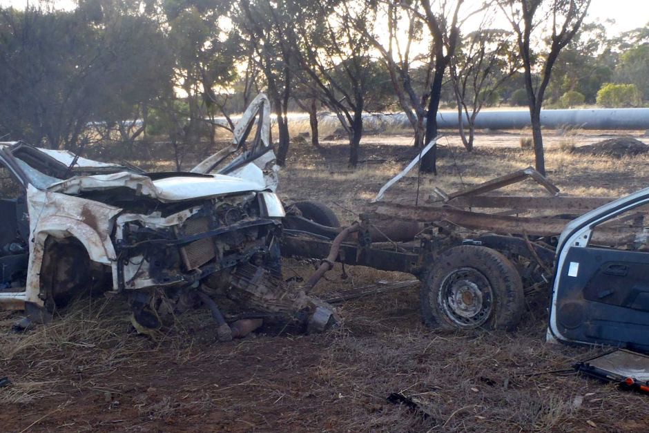 Police said the car was torn in two when it ran off a road in Bungulla and crashed about 3:20am today.