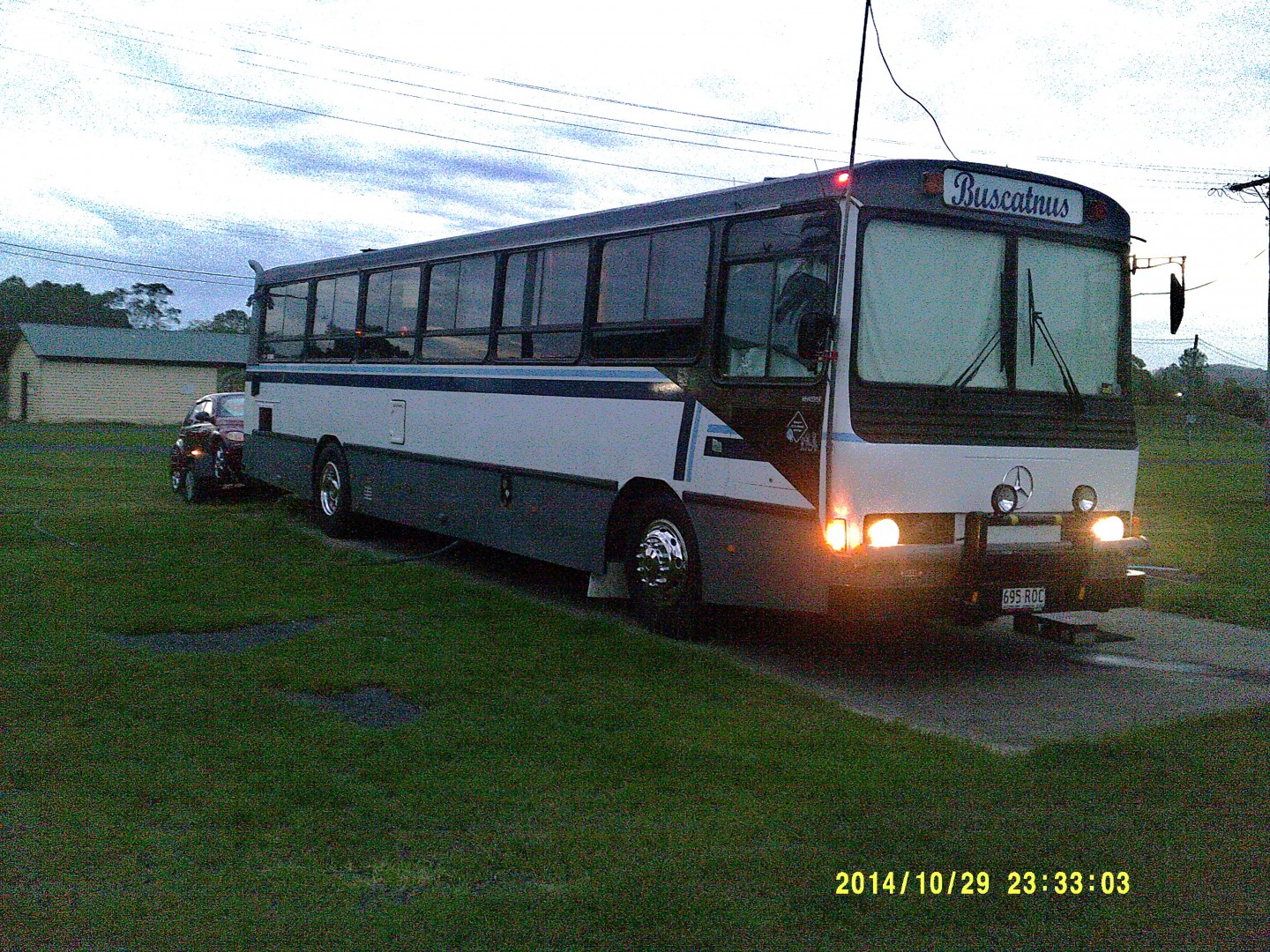 Our mercedes 40ft and trailer. Been a very good and reliable rig. Push motor 250hp turbo...4 to 5 klms per litre .