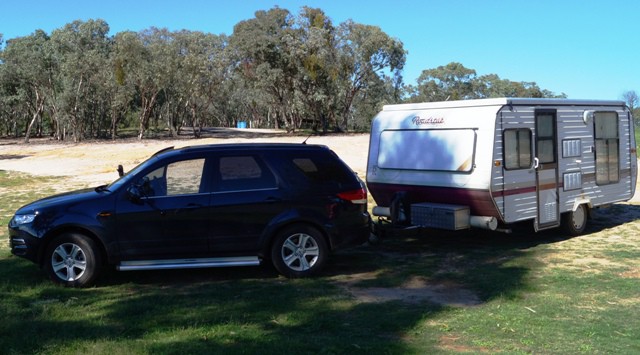 Built special drive on trolleys so we can push caravan sideways across the garage. We tow it through with the Ford out the back door, unhook and push, This gives us access to the inside of the van when in the garage.