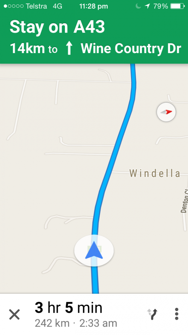 around 7pm , by the time we got going we and fueld us and the car up a few times, and hitting a roo about 80k south tamworth, no damage to car but we think we clipped his tail...poor thing..