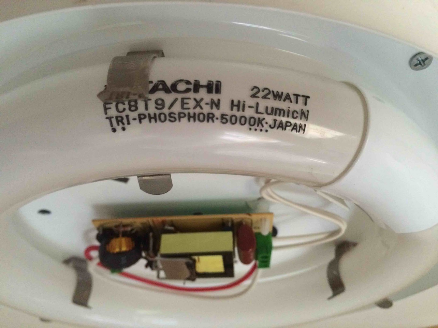 The Red and White wires going in will be the power, one + positive and one - negative most likely the red wire will be the + positive but you'd best confirm that with a multimeter. Thankfully the wires aren't soldered so its just a matter of unscrewing the terminal blocks to remove the wires from the circuit board. If possible I'd isolate the power before playing with it though, you could do that be removing the "lights" fuse or disconecting the 12 battery. Then its just a matter of removing the existing circuit board and the fluro brackets to fit up the new led.