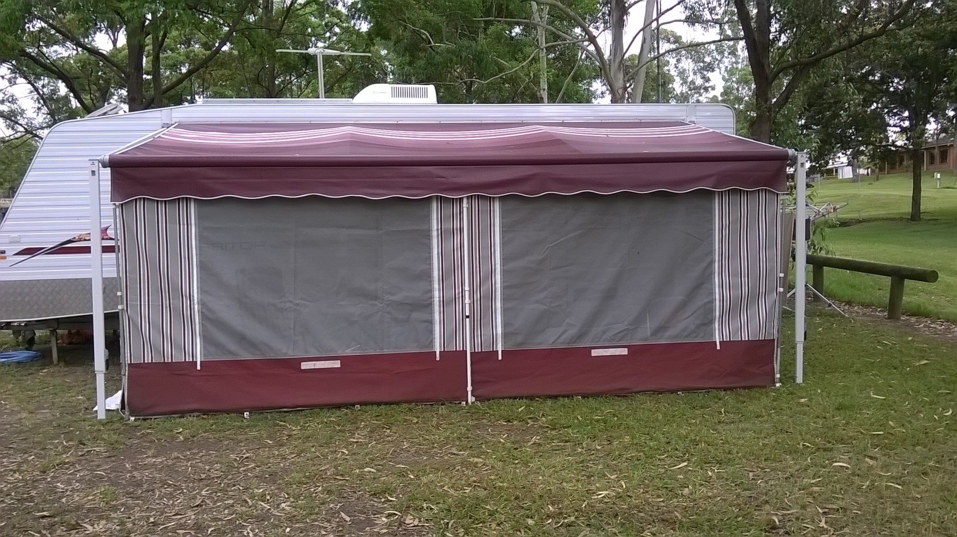 ps... Make sure that you have a generous lowering of one end to facilitate water run off. Once water pools in the awning it will stretch the fabric & give you a problem for ever. A large pool of water can tear the awning too ... again a common occurrence.