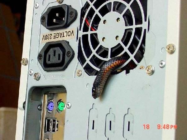 It's interesting that the term "change it out" was used by the technician, which is a very American term, yet the snake is a red bellied black snake and the power supply is 230V. Snopes still has it listed as undetermined since it was listed there in 2002.