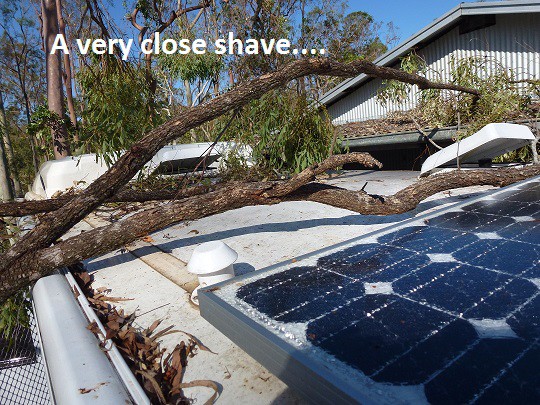 I was very lucky to survive Marcia with just a broken window and ruined solar panel, along with a dent in the awning housing. Could have been a lot worse had some branches come down a few inches either side of where they landed.