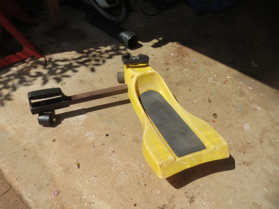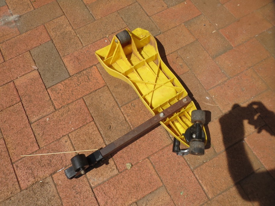 Picked this up yesterday at the Hospice sale only because it was $2 and looked to be both fun and dangerous! No one there knew how it worked or had previously seen one although there must have been a few made, This one has had lots of use but it still seems serviceable. The grandkids all love fun and the more dangerous the better it is - this is perfect but only if someone can tell us it's name or how to ride one.