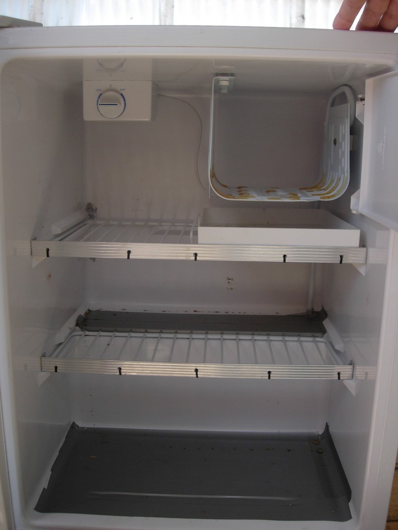 This is my personal experience in using a bar fridge in a caravan. It was a new fridge in 2007 when purchased & cost $80. It had to run off a Honda EM500U generator (450Watt) as well as a 300watt Modified sinewave inverter. As purchased it wouldn't run on either powersupply as the start current was too high. One option was see if the orig compressor would star by fitting a start capacitor, this didn't work. Next step was fit a Sanyo compressor that I knew would start with those powersuplies by fitting a start capacitor. In one picture is the original specs & the specs of the sanyo compressor along side. The current draw after about 20 min is .45A on 250Vac (what we have here). The condencer pipes are in the side walls on this fridge as are most these days. Pics of the Evap temp & discharge pipe 40 mm from the compressor. The fridge when in my van had about 50mm clearance on the sides but was fitted where the orig 3 way fridge was. This fridge did work well in all heats & on the generator & the 300W inverter when travelling On 12 Vdc the inverter drew a bout 10Amps