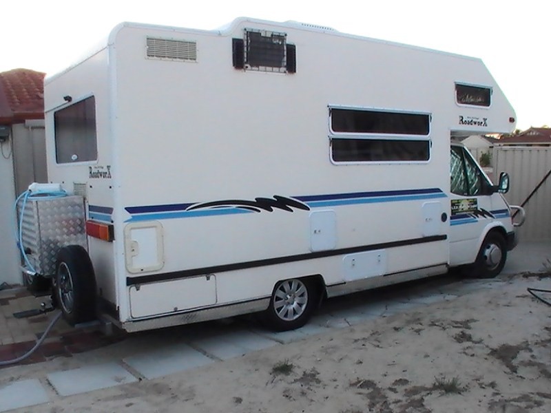 Was going to buy a bottle jack today after I had the new windscreen fitted.... murphy's law found some rust under the old screen that needs to be fixed first, so the MH is off to the panel beater next week for a few days R & R (rust repairs). Thankfully we're still in Perth and can stay with family with the dog whilst its being done. At the moment though we have the windscreen area covered in plastic & duck tapped to the body. Hope it holds cause rain predicted all this weekend in Perth.