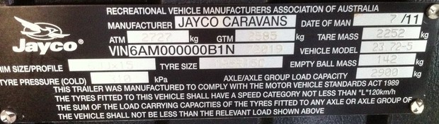 This site may help - http://www.caravandealer.com.au/things-to-know/weights-masses-and-payload-weights