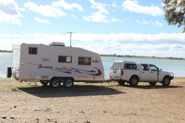 Am at Policeman's Paddock on the Murray - will blob for a day or so and finish fine-tuning the placement of 'stuff'. Will wind up the aerial and have TV tonight I hope - so exciting.!