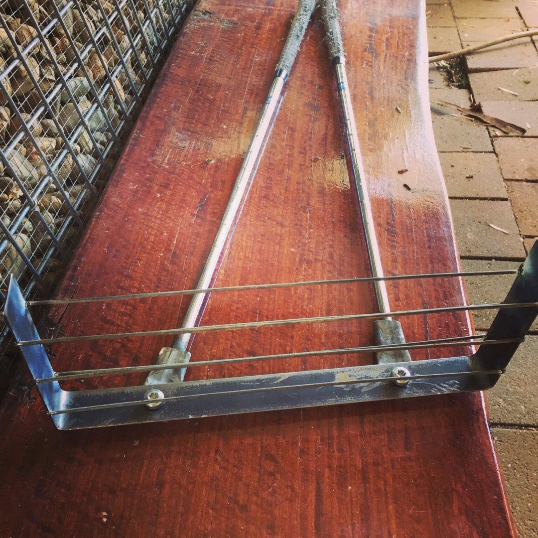 What a great use for 2 old golf sticks. Great thing about these designs is you tip the cooked toast straight on to the plate. We had similar with Charleville scouts but ours worked vertical.