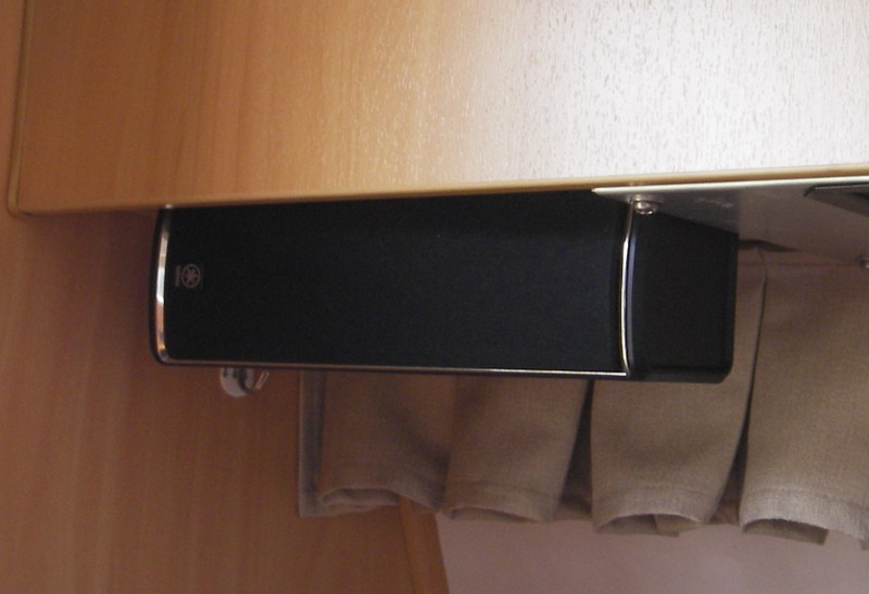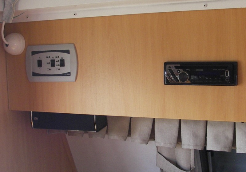 I just fitting a Kenwood car stereo to our Avan. There was already a partial cutout behind one of the panels where the radio would have been fitted during manufacture, if it was fitted. For the speakers I used a couple of Yamaha surround sound speakers I picked up from a garage sale for a couple of dollars, and mounted them under the cupboards using some ally brackets a couple of screws, and some super strong double sided to hold them firm . I will wire the TV sound into the AUX in sockets in the back of the radio for better sound sometime soon. The good thing is that it has a USB input for playing music in mp3 format. It also has a remote control. I might even wire in another set of speakers to use the rear speaker output in the radio later as well. The radio I picked up from a garage sale also for about $40.00. It was brand new unopened, but 12 months old. I have tested it and the sound is great, and plenty loud enough for a van. Similar radios can be bought for about $150.00 brand new from various auto parts places and you can get them with bluetooth to use with your smartphone or I-things if you want to.