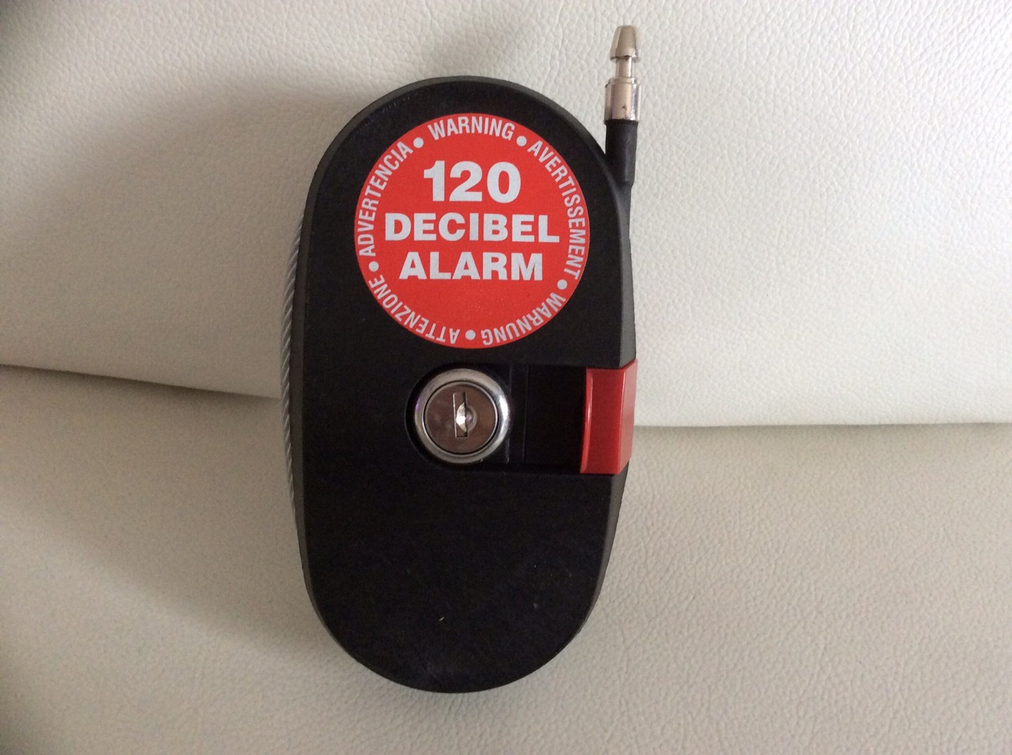 This is what I use for locking my kayak to the van A frame of a night, the cable is stainless steel if removed or cut in half the alarm goes off, it has 2plus mtrs of cable and the alarm is 120 DECIBEL very loud.