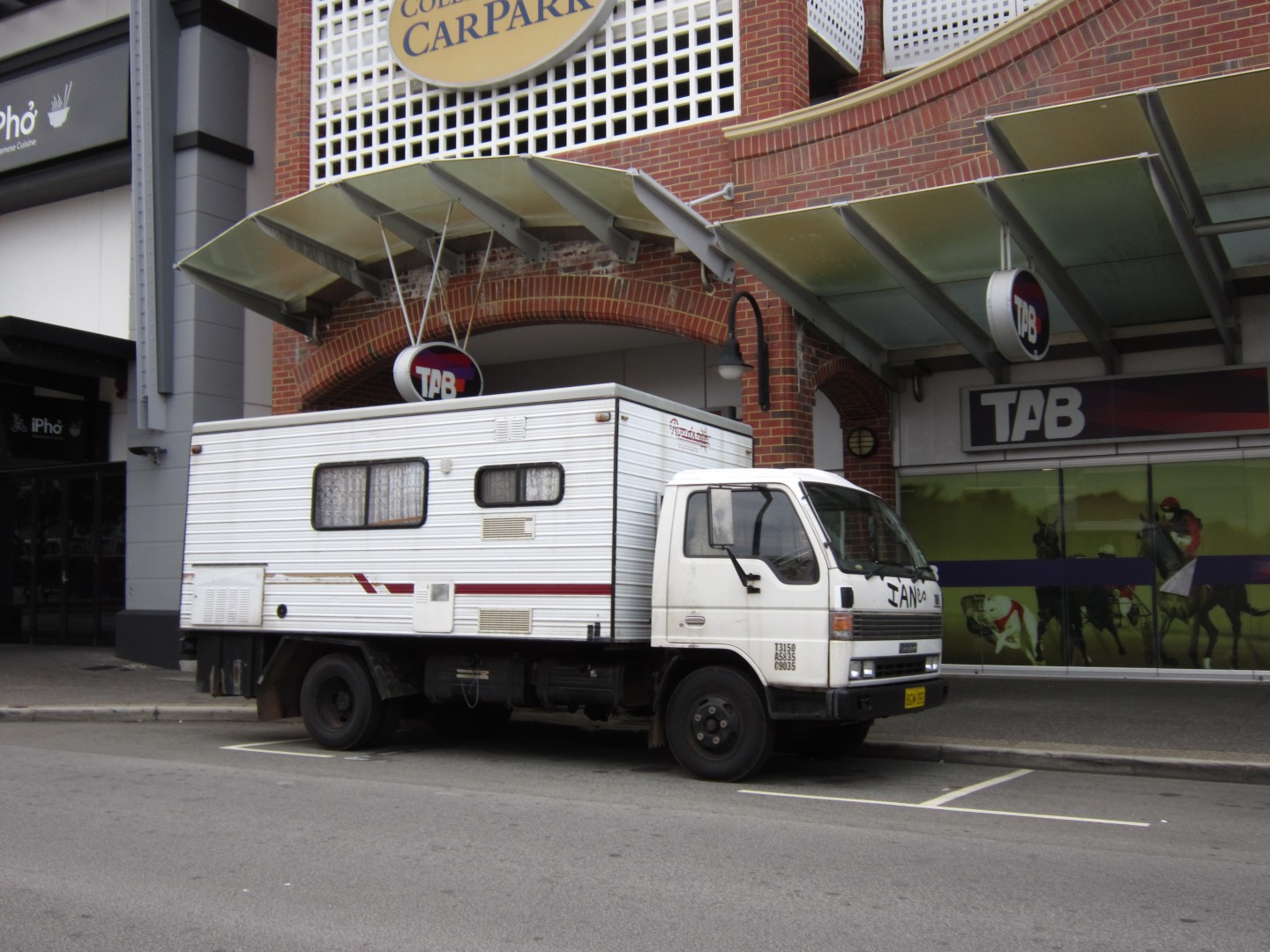 He is in at the TAB trying to win enough to bye a new caravan.