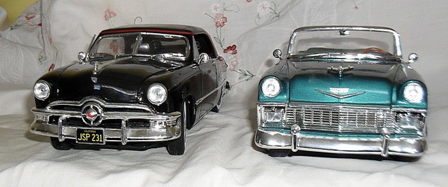 The second car is a 1/18 scale model 1950 Ford Single Spinner, 2 door Convertible.................
