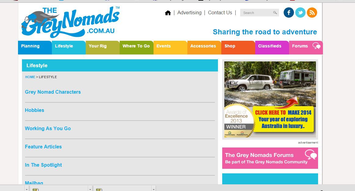We try to look at the main section of the Grey Nomads to read about the LIFE STYLE SECTION, and after looking at a few individual stories, it drops out every time. Even we try to go back. are we doing something wrong?