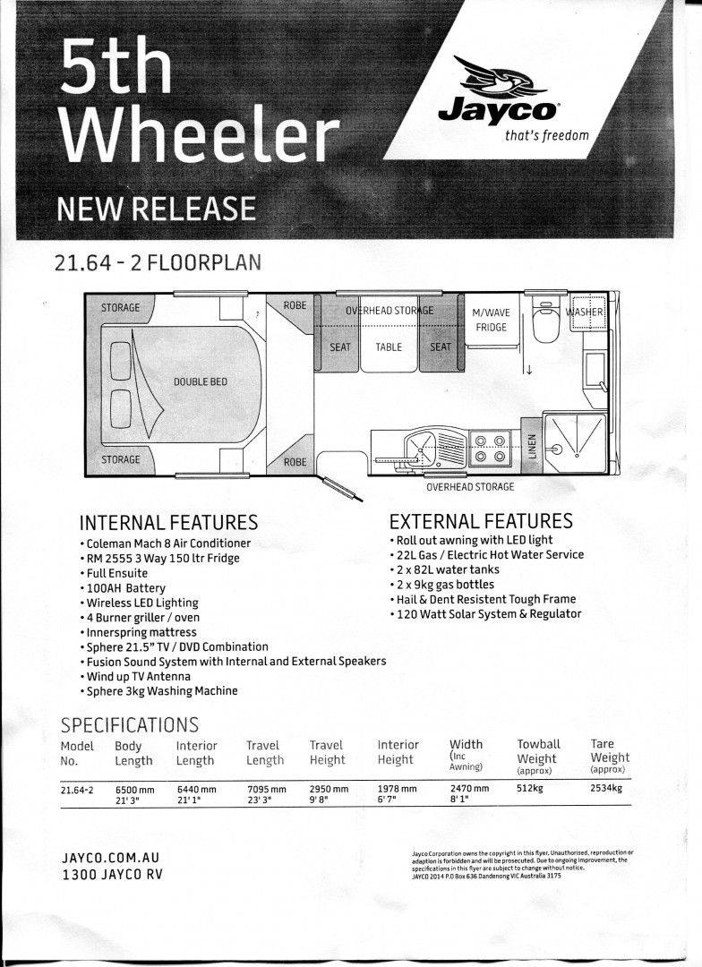I have attached a brochure of the new Jayco model which is 22ft long but would have a towing length of about 18ft or less. It is new in the $70,000 mark, which is comparable with a large caravan. The hitch costs about $4000 to fit.