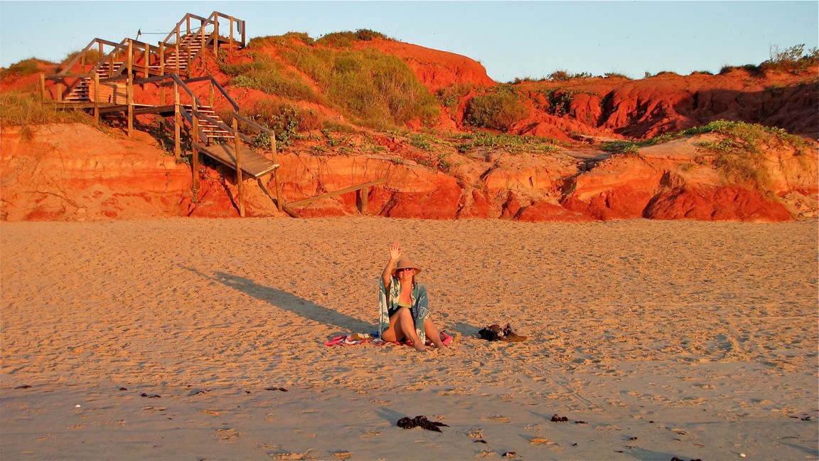 IF you do then try for a late arvo low tide, walk south along the beach for about 1 to1.5kl ;around the rocky outcrop to the next bay. Spectaculator rock formations ; water from a spring runs accross the beach & reflects the rocks; along with the colours of the setting sun, followed by a rising full moon.