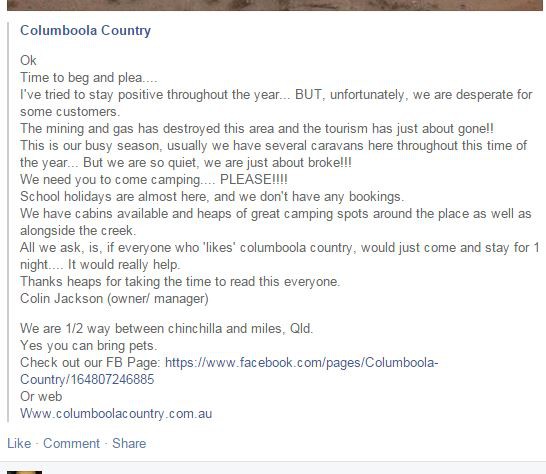 John, Emma just wanted to make us travelling public aware of the predicament of http://www.columboolacountry.com.au/