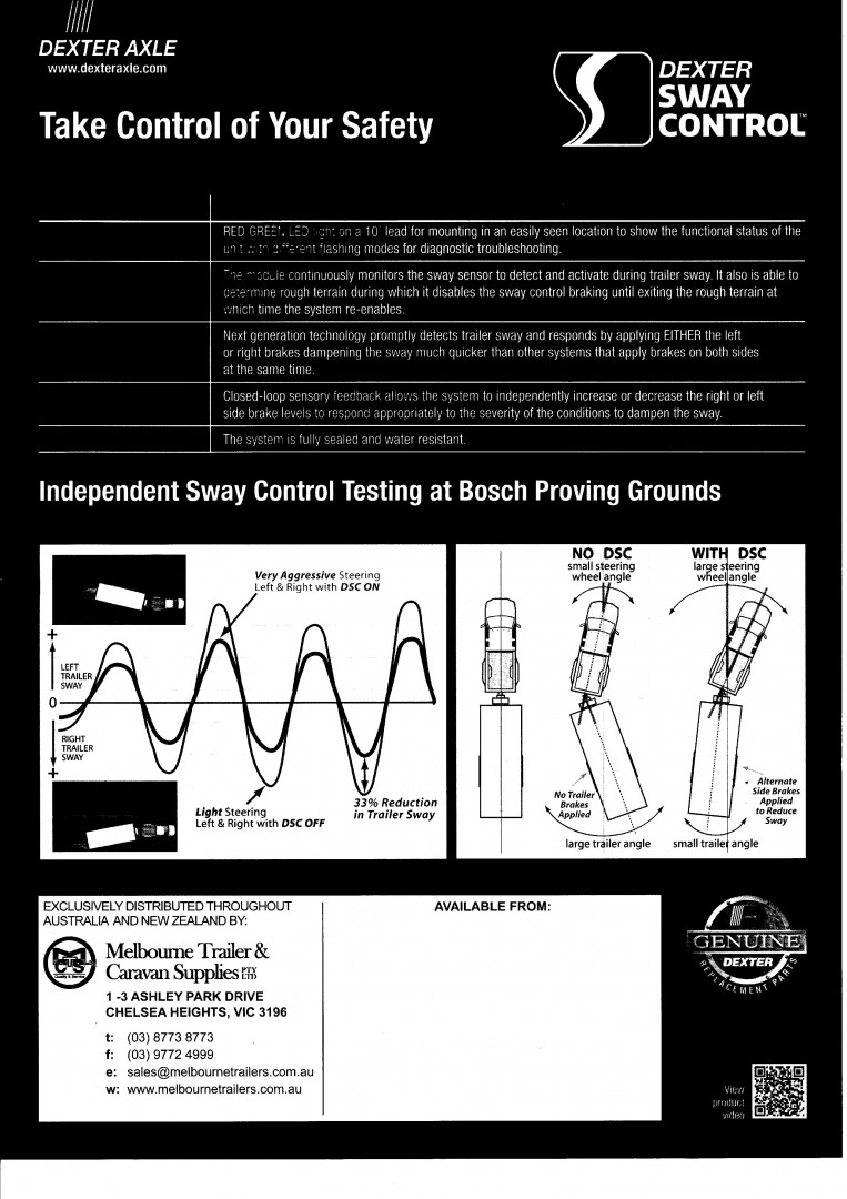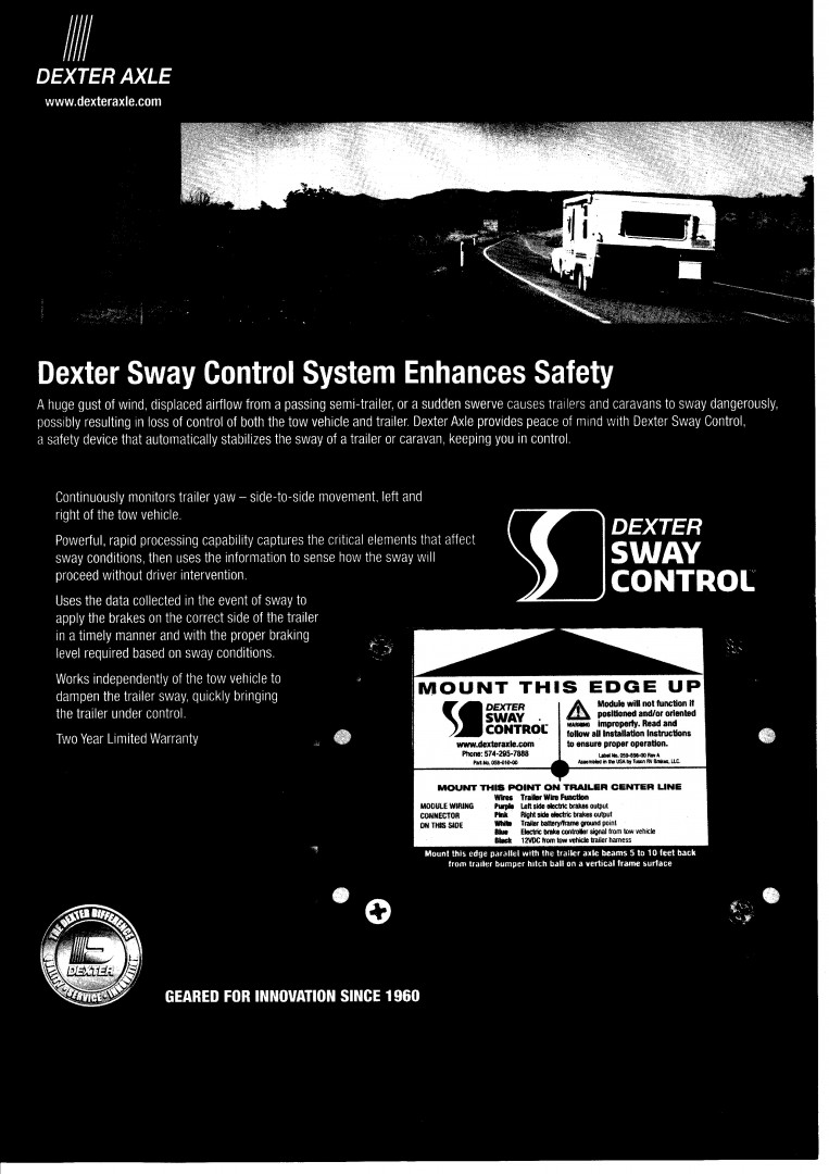 DEXTER system only engages left hand side on left hand sway and same when there is right hand sway, only right hand side, thus bringing the van into check quicker, engages and disengages automatically on off road thru micro sensors, a superior system, and will fit most current electric brake systems.
