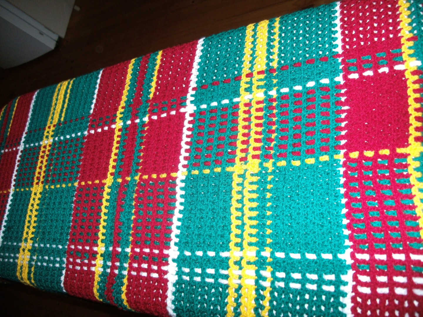 I have recently started crocheting tartan rugs. Photo of my first in progress....