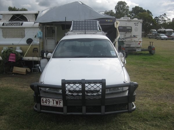 Charges a deep cycle battery in a box on the back. ( The back of the ute is closed in with purpose built checker-plate alloy boxes.)