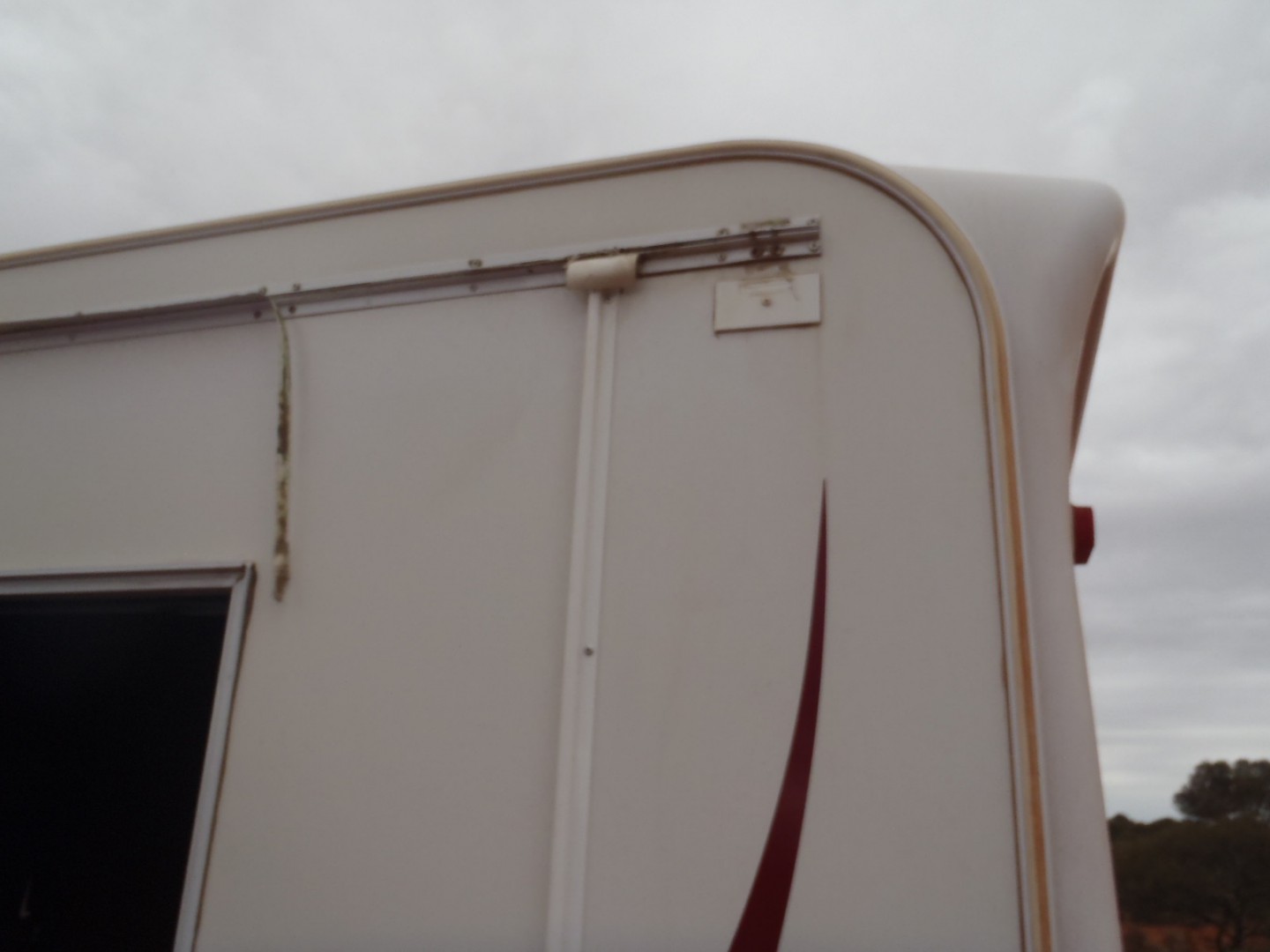 I now see Kiwijims warned of serious winds/storms predicted for Sunday 21st June in the Central Goldfields/Leonora/Laverton areas...Telstra may claim to cover Australia however I can vouch for the fact it does not cover north west Laverton....with no coverage we had no idea of the extent of the predicted storms and our camp in the donga was hit by ferocious winds...tearing my awning off the caravan completely and mangling the fittings in the process....my wife Julie <little trooper that she is> was holding onto the awning when the freakish winds hit, while I was out prospecting..she went up and on top of the van hitting her head <not seriously>....at the height of the winds....which hit first up..then a lull...and hit again with even greater gusto..double guy ropes with large spikes plus spikes into the awning arms did not help.....we would have rolled up the whole thing if we had any knowledge of what was to be on that Sunday..