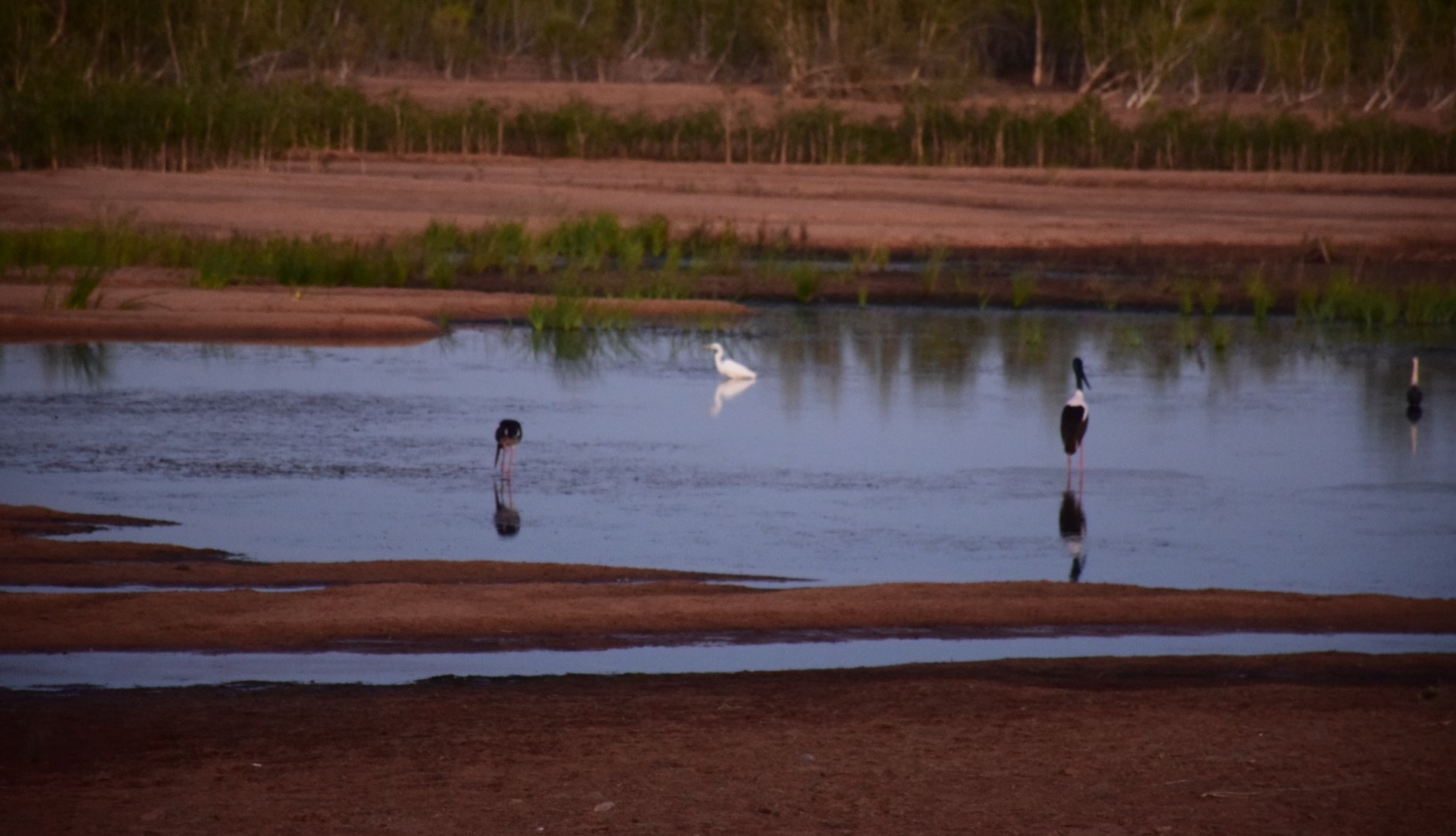 The sunset was beautiful with little finch like birds flitting over the water and the larger Jabirou's standing in the water, making for an interesting photo opportunity.
