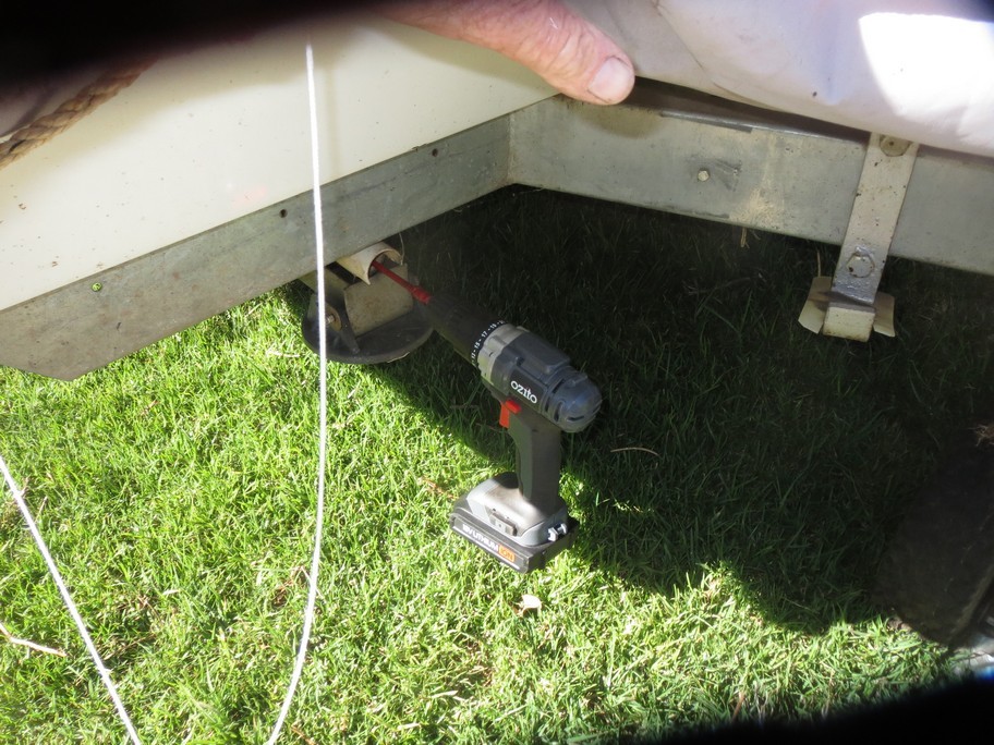 I've simply attached a short length of 25mm plastic pipe to the chassis at each leg to guide the winder to the head - you only have to lean down, insert cordless drill winder in hole a pull the trigger. Simple and cheap. I'd add a picture but it's dark outside.
